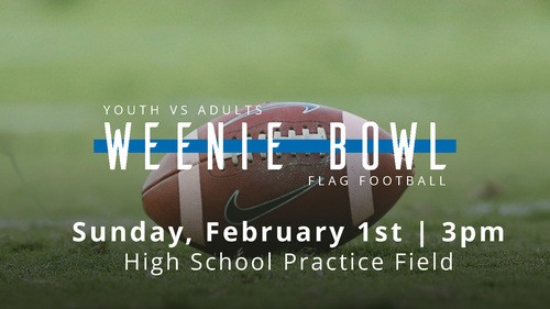 Join us for our annual Weenie Bowl! This is a church tradition where the adults & the youth battle it out in a flag football game. It will be this Sunday at 3pm at the Hallsville Practice Fields.